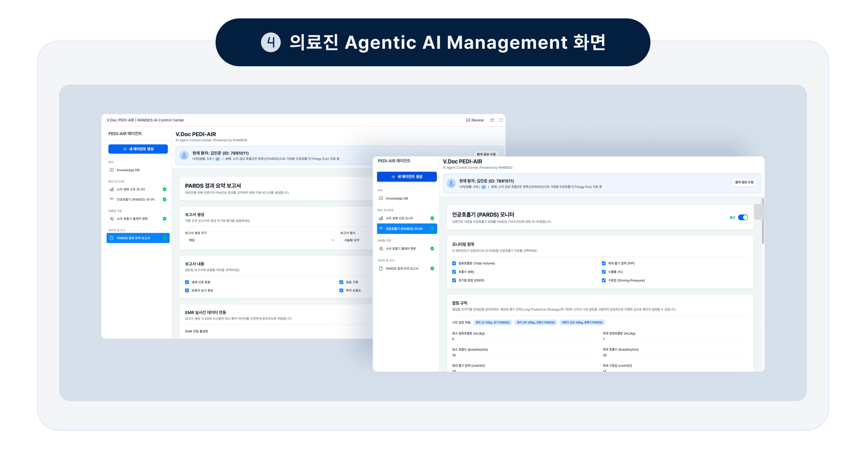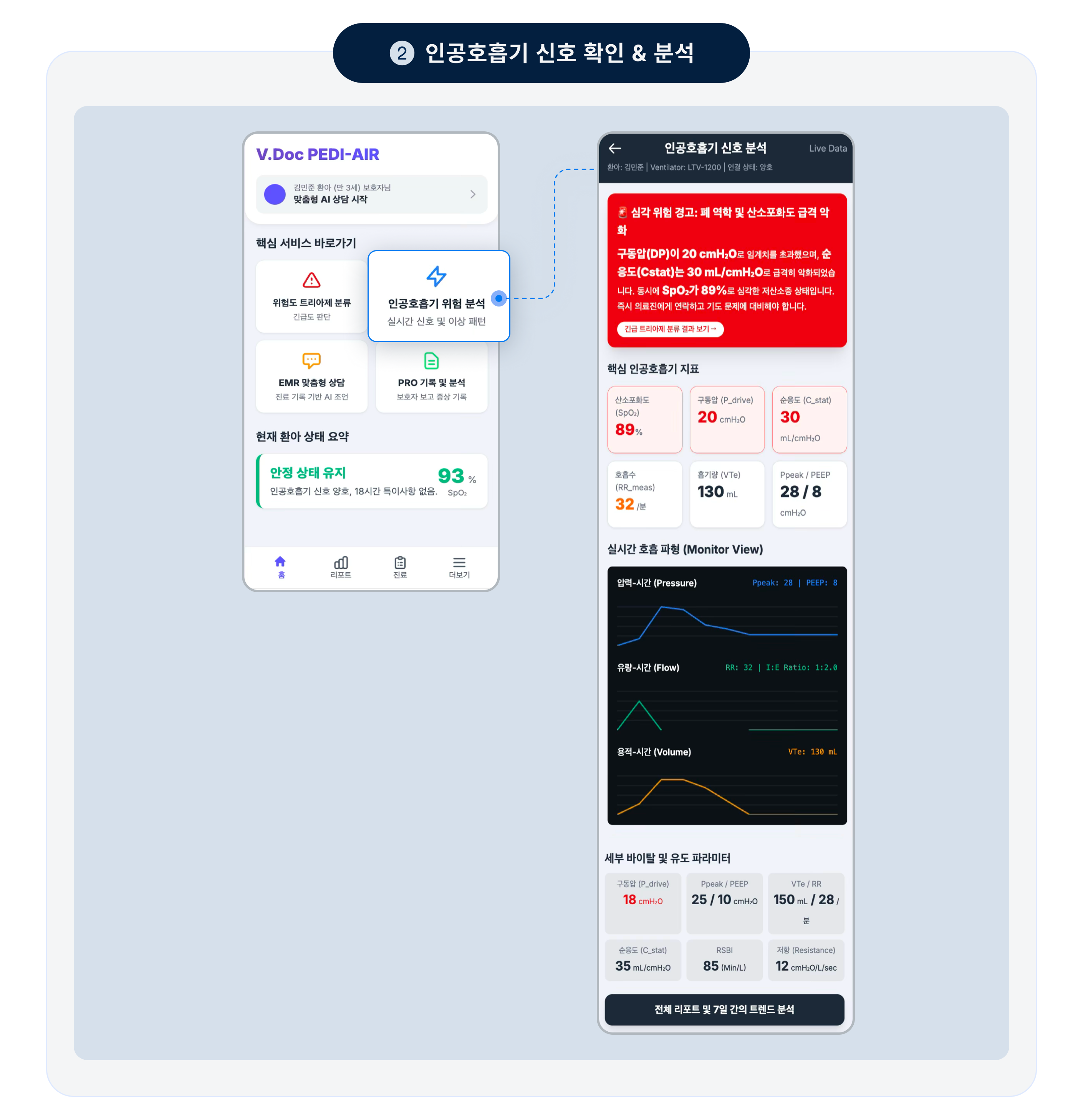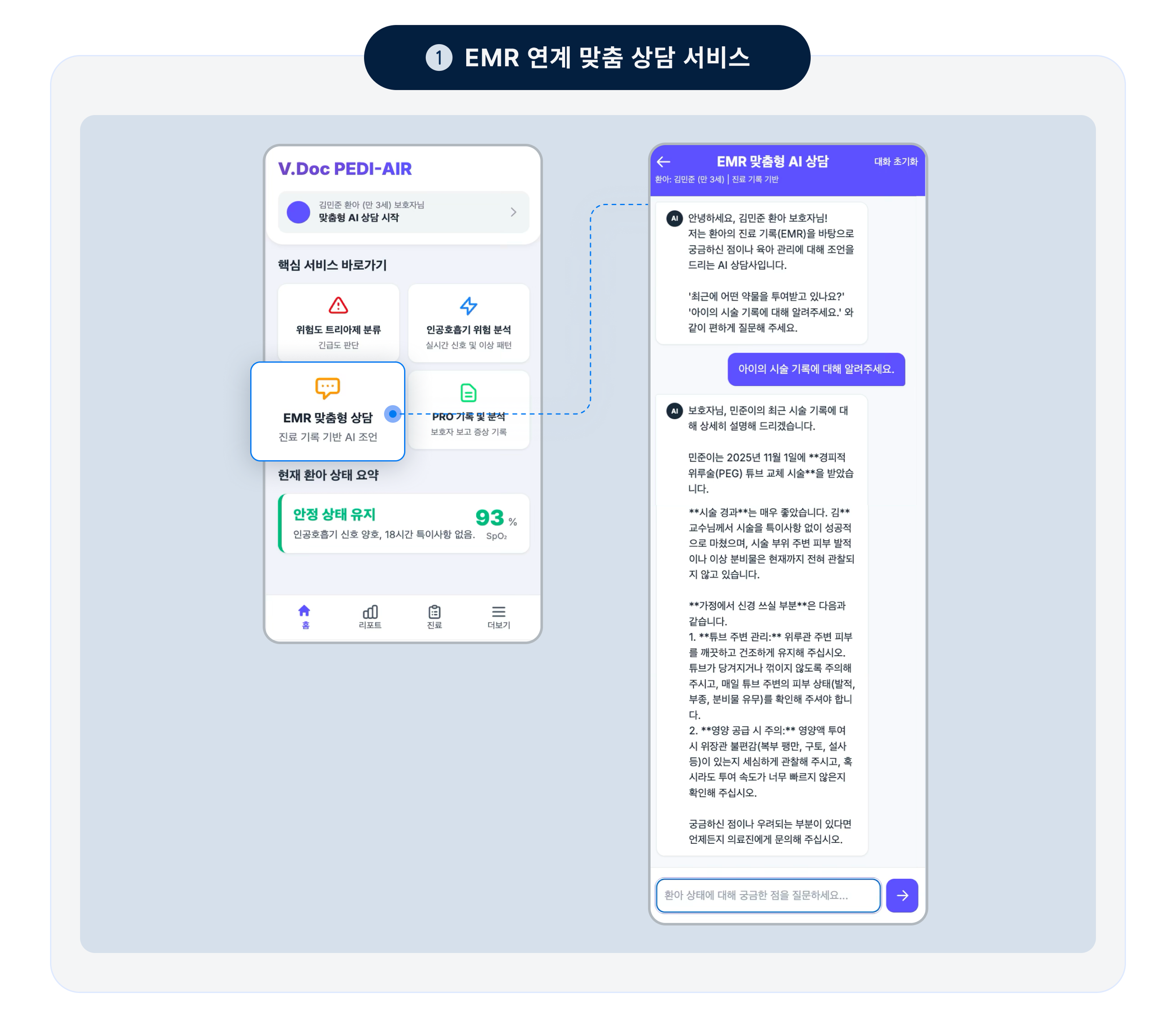 | 주요기능 | EMR 연계 개인 맞춤형 상담 서비스, 가정용 인공호흡기 신호 연계 위험 분석 서비스, PRO 기록 및 분석 서비스, 복합 데이터 기반 Triage 분류 |