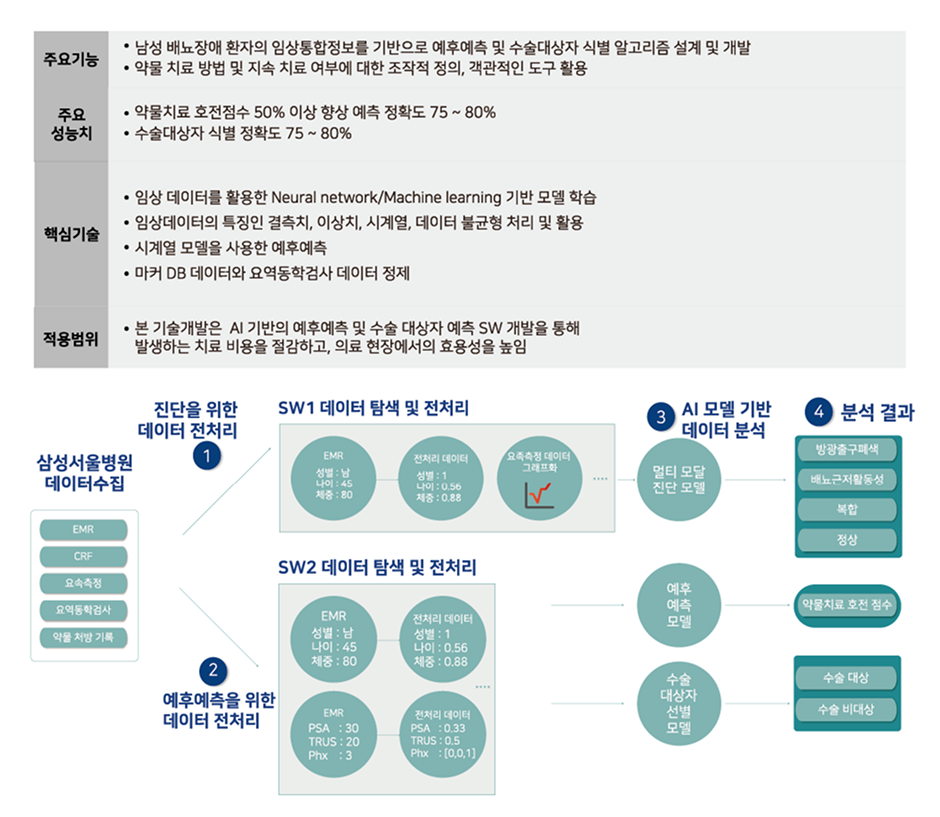 남성 배뇨장애 원인 감별 및 스크리닝 진단보조, 약물치료를 통한 배뇨장애 호전 예측 및 수술대상자 치료 관리.