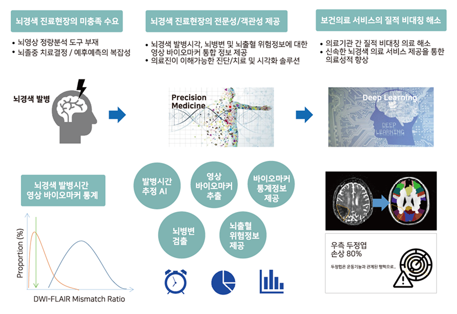 임상현장 의료진에게 뇌경색 발병시간 및 뇌출혈 위험정보를 제공하기 위한 뇌 MR영상 기반 인공지능 소프트웨어 개발.