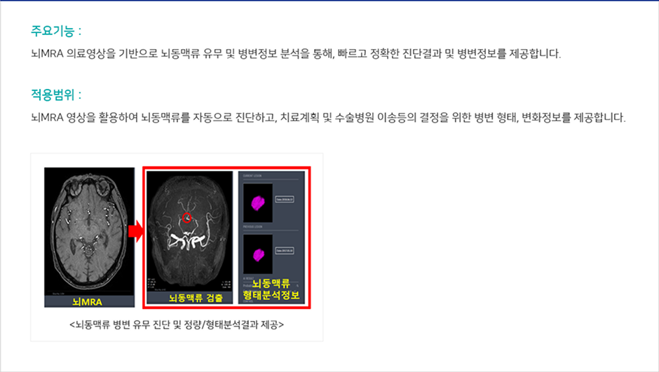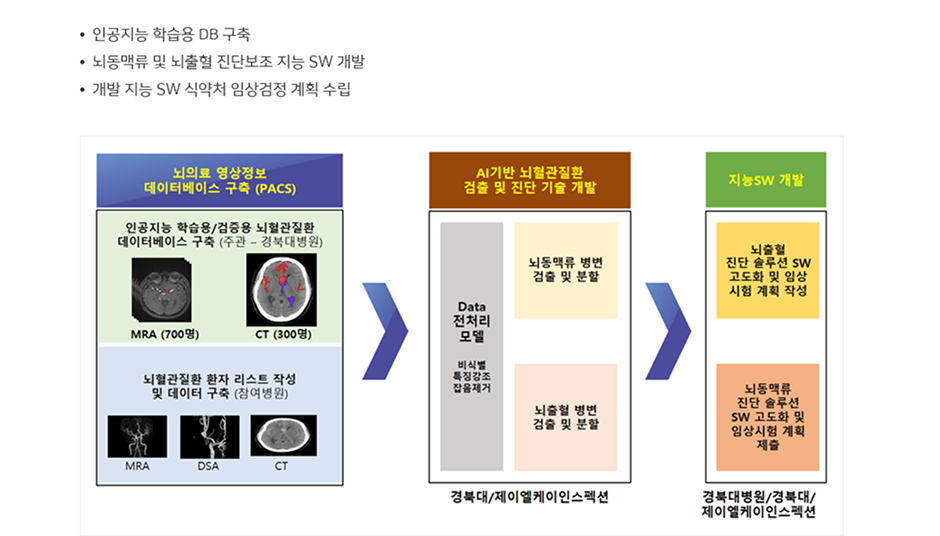 뇌혈관질환 의료영상 기반 뇌동맥류 및 뇌출혈 자동 진단/분석 SW 개발을 목표로 하고 있습니다.