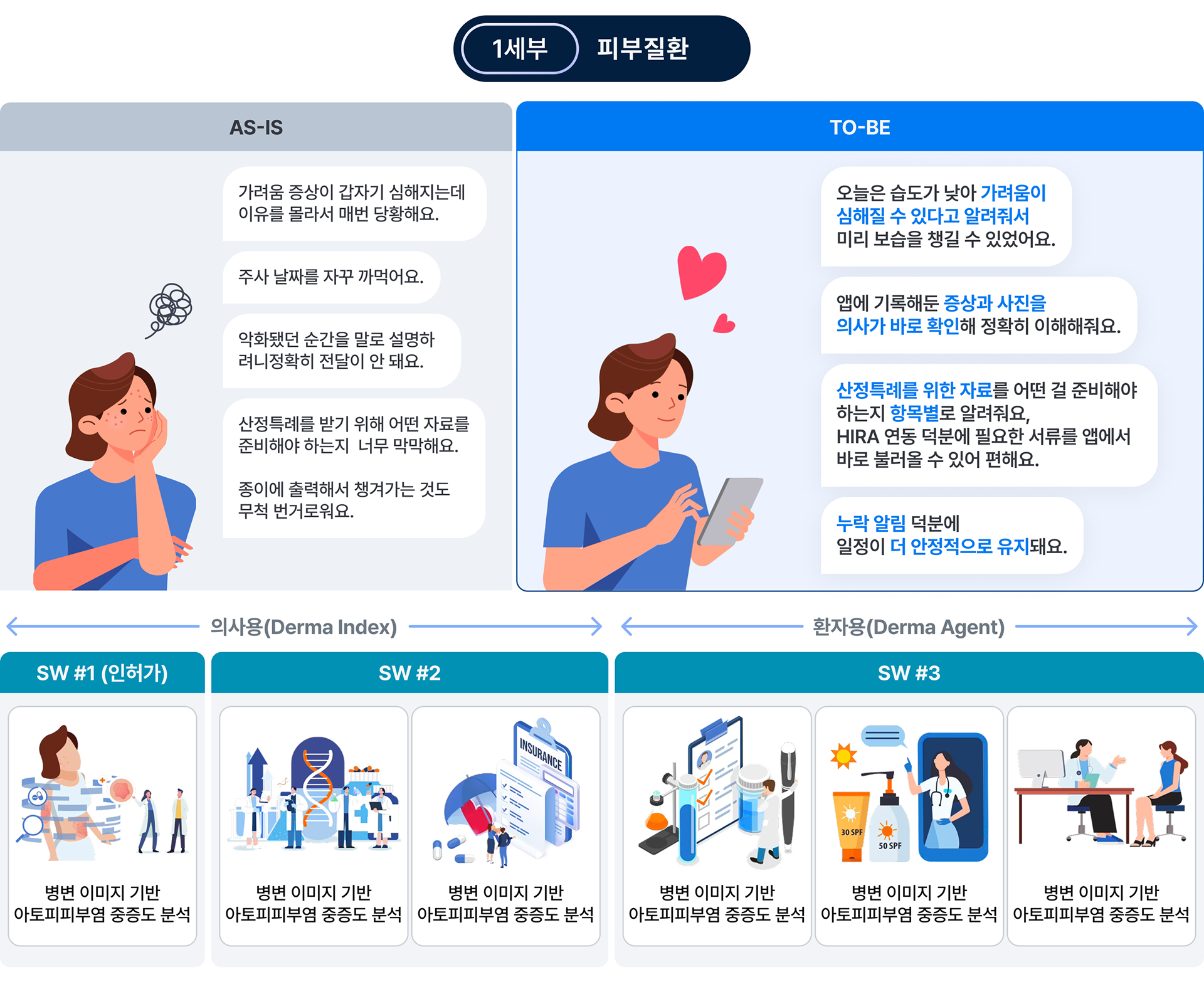 | 적용 범위 | 디지털의료기기소프트웨어로써 2차 병원 이상의 아토피피부염 관련 진료과(피부과, 소아알레르기호흡기, 알레르기내과)에 서비스를 제공 |